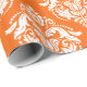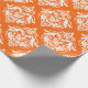 Balões florais brancos elegantes em um padrão geométrico sem costura sobre fundo laranja de halloween.