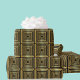 Papel decorativo e elegante de embrulho preto e dourado com quadrados de ouro brilhantes intrinsecamente ligados para produzir uma ilusão 3D cativante.