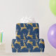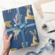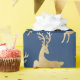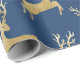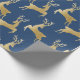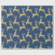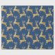 Veado dourado legante sobre fundo azul marinho.