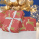 Veado de tom de ouro elegante sobre fundo vermelho oco.