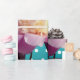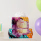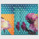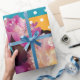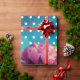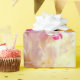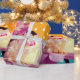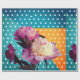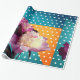 Elegante. papel de embrulho de presente fresco.Lindas flores de pénia rosa-rosa fotografadas em fundo amarelo e azul com pontos brancos para o seu embrulho de presente especial.