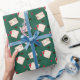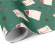 Papel de enrolamento com padrão de Natal de letras de safra e envelopes amarrados com cordas. Padrão uniforme de aquarela branca com carimbos de postagem em um fundo verde escuro. Belo Natal ou Ano Novo para embrulhar e decorar presentes de férias de inverno
