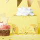 Uma ilustração gráfica de um sol feliz e lua em papel embrulhado.