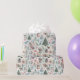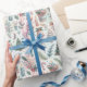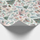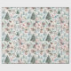 O papel de embrulho decorativo apresenta uma série de ilustrações de feriado encantadoras, incluindo árvores, velas, ornamentos e canetas doces, criando uma atmosfera de Natal alegre e perfeita para presentes.
