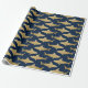 Enrole seus presentes de amantes de tubarões neste papel de embrulho de padrão de tubarão dourado elevado.
