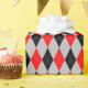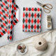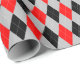 Um papel de embrulho projetado com um padrão vermelho, preto e cinza de argila em grande tamanho.
