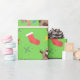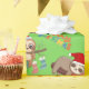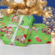 Folhas de papel de embrulho de Natal, mostrando preguiças cômicas em chapéus de Natal esperando Papais noeis chegarem com seus presentes.