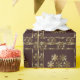 Este papel de embrulho marrom-chocolate tem brilho e elegância com um padrão de quadros de flocos de neve de ouro brilhantes ao redor de um grande floco de neve de ouro no centro de cada um. Da minha imagem original criada digitalmente.