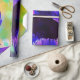 Ametist Roxo girassol rodeado por larvas amarelas e violetas e verdes azuis