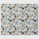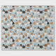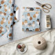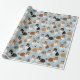 Cães de Collie Rough Cute sentam-se e ficam de pé e rollover com casacos sápidos, tricolores, unidos e brancos com ossos de cão espalhados e padrões de pegadas.