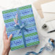O encapsulamento de presente personalizável apresenta um padrão listrado elegante em uma mistura de tons primavera verdes e azuis, juntamente com dois campos de tipografia para personalização. O design inclui atualmente o cartões de natal "Dia de os pais Feliz!" Personalize este papel personalizado de empacotamento para torná-lo de um tipo e emparelhe-o com uma etiqueta de presente, um cartão e um envelope correspondentes para uma apresentação ousada, ponderada e coordenada. © Wafa Y. Dahdal - Todos os direitos reservados.