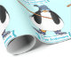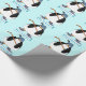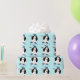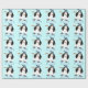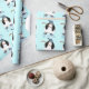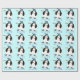 Papel de embrulhamento de presente personalizado único, personalizado com seu nome de família, pinguim engraçado e bonito com papel azul de embrulho de Natal