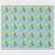 A pintura de três balões em amarelo, vermelho e verde, em um céu azul, é impressa em um padrão, com um marcador para o nome da pessoa de aniversário, é impressa em papel de embrulho. Personalize facilmente o nome no formulário modelo.