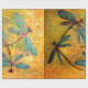 Lindas libélulas de asas azuis girando sobre um bonito fundo amarelo ouro. Personalize o texto com um nome ou mensagem para fazer um presente pessoal de excelente.