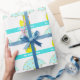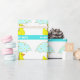Bela ideia de embrulho de presente ou decoração de chá de fraldas de bebê ou bebê bonitinho com pata de borracha fofa com ilustração de guarda-chuva. Para personalizar, edite texto para adicionar o nome do recém-nascido.