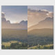 Este papel de embrulho apresenta uma bela paisagem pintada com montanhas sobre um vale de madeira.