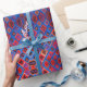 Um papel de embrulho branco espantoso, adornado com padrões radiantes de estouro em ouro, prata e azul profundo, ideal para criar presentes atraentes para feriados, aniversários ou celebrações especiais.