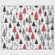 Papel simples branco preto e branco e papel de embrulho de árvore de Natal vermelha.