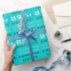 Este simples e personalizado design de papel de empacotamento de aniversário apresenta uma mensagem como "A-Name-Here, feliz 89º aniversário!", onde o nome e o número de aniversário podem ser personalizados. Também apresenta formas ovais decorativas. O fundo é turquesa escura colorida. Um papel de enrolar como este pode ser usado ao embrulhar presentes que estão sendo dados a alguém em comemoração de seu aniversário. [~Z0000243]