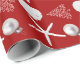 Estrelas vermelhas e brancas e papel de embrulho de Natal de areia em um rolo. Enrole presentes de férias em papel temático de praia com muitas opções de cores. Ou vá para a área "personalizar" e escolha sua própria cor de fundo.