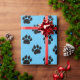 Presente Pet Paw Patterno Sobre Papel Azul De Embalagem