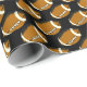 Está aqui algum papel de envolvimento dos esportes do divertimento com os futebóis marrons e brancos que voam através do ar. Personalize o fundo escuro à cor de sua escolha.