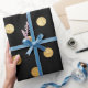 Preto do papel de envolvimento do teste padrão de bolinhas da folha Dourado