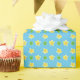 Um rolo de Giftwrap bonito, com um padrão de primatas amarelos e Bolinhas verdes sobre fundo Turquesa: parte da coleção Posh & Painterly 'Primroses'.