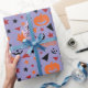 O "Pumpkin, Stars, and Leaf Seamless Wrapping Paper" apresenta abóboras aninhadas em folhas de outono com estrelas brilhantes e palavras assustadoras de Halloween, perfeito para presentes temáticos do Halloween.