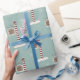 Adicione um toque único aos seus presentes com este elegante rolo de papel de embrulho com o Polo Norte sobre um fundo bonito de floco de neve azul