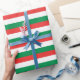 SEAM CORRESPONDENTE: Papel de enrolamento de Natal em faixas verdes, brancas e vermelhas. Veja a coleção de papéis correspondentes nesta série Incluindo sólidos que correspondem às listras.