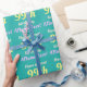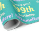 Este design de papel de empacotamento de aniversário personalizado e simples apresenta uma mensagem como "Tenha um excelente 99º aniversário, ANameHere!", onde o nome e o número de aniversário podem ser personalizados. O fundo é verde-claro-marinho. Um papel de embrulho como este poderia talvez ser usado para embrulhar presentes que estão sendo dados para celebrar o aniversário de alguém. [~Z0000243]
