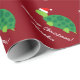 Tartaruga de Papai noel giro... papel de embrulho de Natal feliz. Design de animais vetor bonito com o chapéu de Santa Cláusula. Presença personalizada para pais, filhos e bebês. Uma ilustração engraçada para os feriados. Adicione o seu próprio nome e as saudações de época personalizadas, como Feliz Natal ou Feliz Natal. Também é divertido para a festa do chá de fraldas de Natal. Cor de fundo personalizável é verde ou vermelho. Design neutro para homens e mulheres.