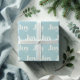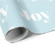 Este moderno papel de embrulho de Natal mostra a palavra "Joy" em tipografia branca e negrito contra um fundo azul pálido, oferecendo uma escolha simples mas na moda para feriados de inverno.