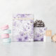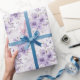O papel embrulho é mostrado com um adorável impressão floral roxo. Personalize este item ou comprar como está. Impressão licenciado