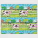 Cena de fazenda de uma vaca pastando e um galo em uma cerca. Este design parece realmente eficaz nestes papéis de enrolamento