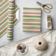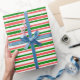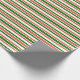 Este design de papel de embrulho apresenta um padrão listrado inspirado no Natal com cores como vermelho, branco e verde. Um papel de embrulho como este pode ser usado na preparação de presentes ou presentes para comemorar um aniversário, um casamento, um aniversário ou qualquer outro evento.