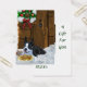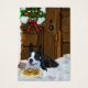 Linda arte de Natal de Boston Terrier. O Boston Terrier espera na varanda coberta de neve para Papais noeis chegarem, guardando cookies de Papais noeis. Presentes de Natal maravilhosos, cartões de Natal, postagem, roupa e muito mais.