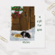 Bela arte japonesa de Natal. O queixo japonês espera na varanda coberta de neve para que Papais noeis cheguem, guardando cookies de Papais noeis. Presentes de Natal maravilhosos, cartões de Natal, postagem, roupa e muito mais.