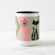 Acordar até esta caneca legal com um design de meio século. Gato preto e estrelado atômico com algumas listras fazem este design se destacar. Para você beber café com meio século.