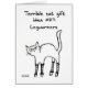 Fazem acessórios adoráveis para gatos. Camisolas do gato, chapéus, cabos, etc. São todos os uma ideia terrível. O gato irritado não gosta deste presente e não tem nenhuma intenção de vestir-la. Suspiro. Você tentou. Um grande cartão a enviar a um proprietário do gato, ao amante do gato, a um dançarino, ou mesmo a uma senhora louca do gato. De facto, apenas para qualquer um que precisa um riso. Você pode ver mais de meu design irritado do gato em minha loja de Zazzle aqui: http://www.zazzle.com/funkychicdesigns