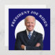 Esta design apresenta um retrato de Joe Biden sobre um fundo azul e branco.