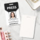 Carregue facilmente a sua própria fotografia e código de Bar. Crachá de imprensa personalizado com ID de foto e código QR. Personalize o título do trabalho, seu nome e nome da empresa de acordo com suas necessidades. O reverso tem 'Se encontrado retornar para". Pressione o Crachá Pass Photo (Passar foto) e o Código do Bar. Esta foto de modelo e o Código de Bar são apenas para fins de demonstração.
