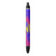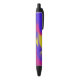Caneta coberta por um borrão colorido de rosa, amarelo e roxo.