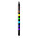 Listras coloridas alternas e listras pretas. As cores são vermelhas, alaranjadas, amarelas, verdes, azuis, índigo e violeta.