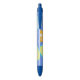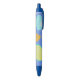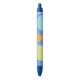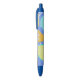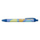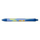 Essa caneta mostra uma ilustração que se refere a frutas de verão e citros como limão e laranja, na superfície azul.