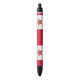 Caneta com pavilhão da cidade de Birmingham, Alabama; bandeira com três bandas verticais de vermelho e branco com selo da cidade com uma estrela no centro