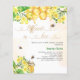 Um fundo branco na moda e ouro de cor d'água. Decorado com espécimes do gênero Bombus, melando mel, um pente de mel com flores amarelas, flores e um pote de mel. Com o texto: Pretende-se ser escrito com um moderno estilo escrito à mão com corações. Personalize e adicione o nome da noiva. 1 folha = 1 convite impresso de borda a borda.