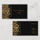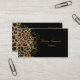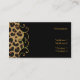 Cartão de visita chique à moda feito no preto, com gráficos de um teste padrão manchado marrom e preto do jaguar, na esquerda, com um flourish goldtone elegante na borda. O texto marrom dourado, na parte dianteira e na parte traseira, está pronto para personalizar a suas necessidades. Bonito esteja para fora o cartão que embala uma primeira impressão impressionante.