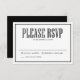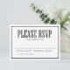 Quem está participando? Deixe seus convidados RSVP com este cartão de resposta personalizável. Apresenta tipografia vintage, perfeita para qualquer tema de casamento. Personalize-o adicionando os detalhes do evento. Essa placa RSVP preto e branco também está disponível em outras cores e estoque de cartão.